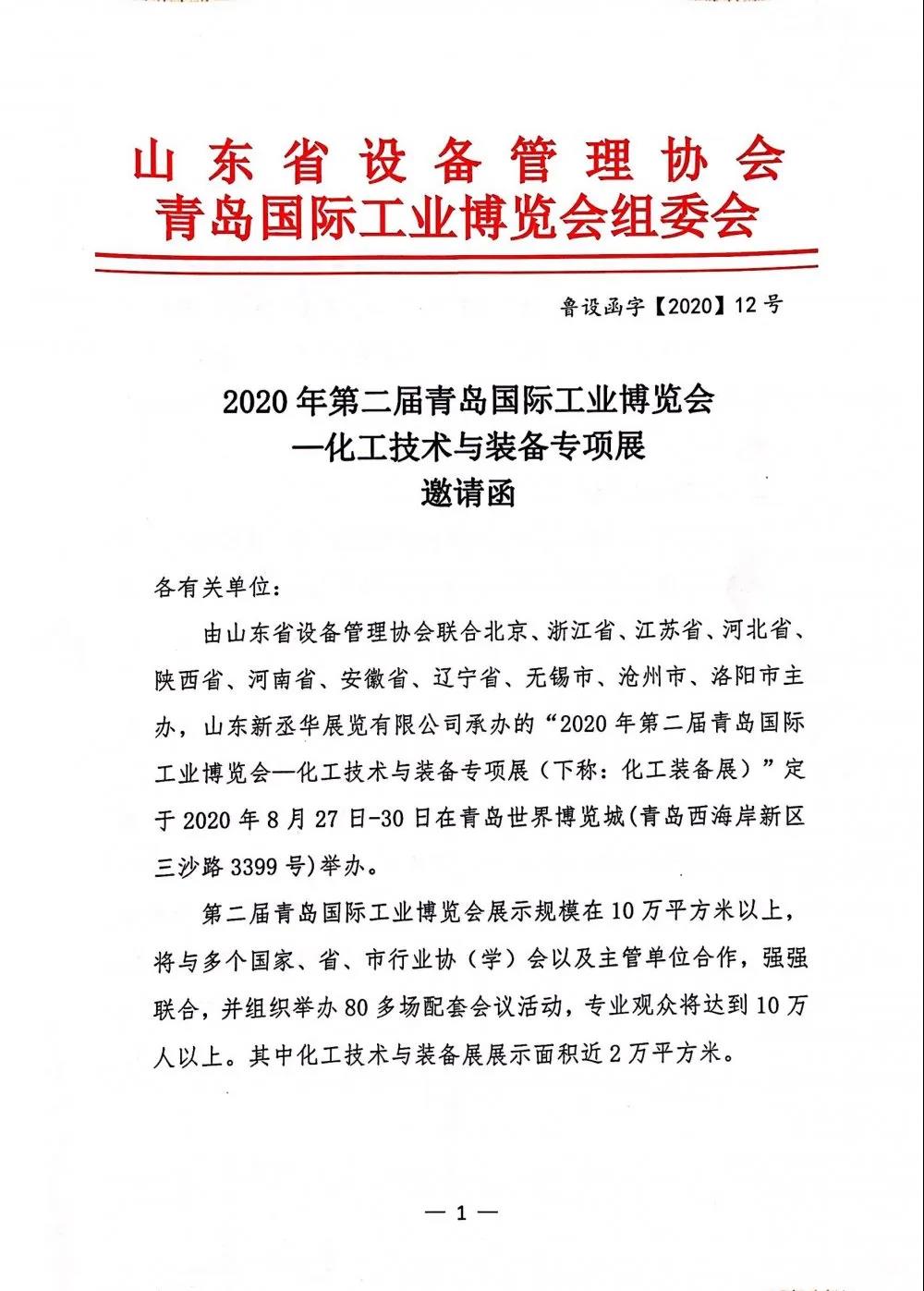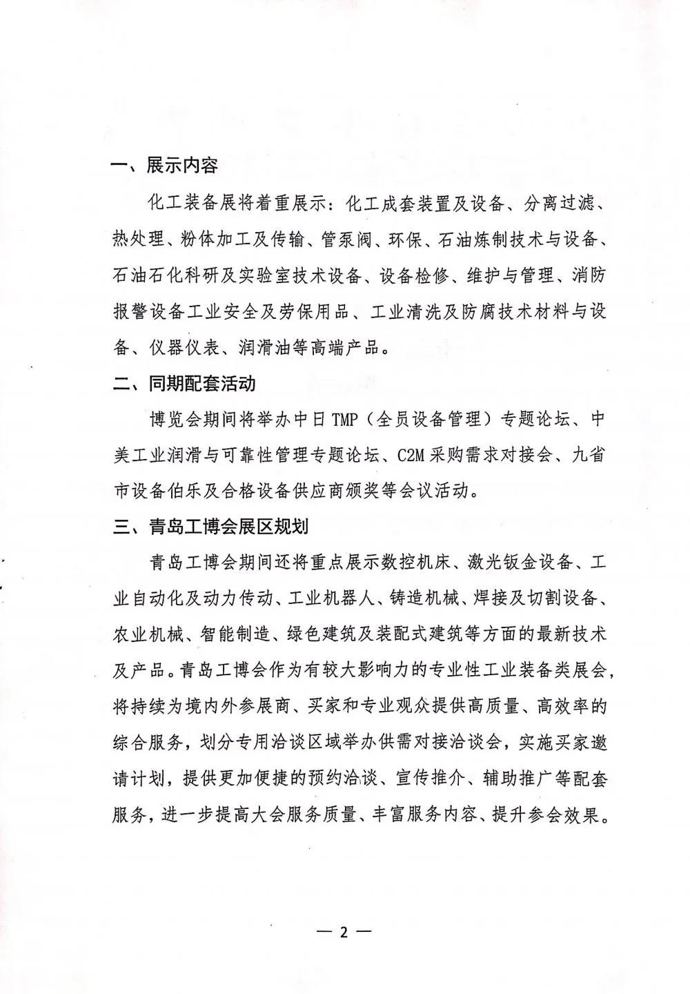 山東省設備管理協會邀請化工技術與裝備制造業企業參加青島工博會
